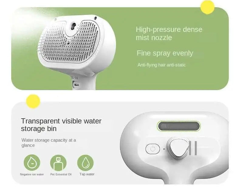 Meet the PawMist Pet Grooming Brush — the next generation of pet care. With a built-in mist humidifier, this smart brush smooths and hydrates every stroke. The fine 304 stainless-steel needles glide effortlessly through fur, removing tangles, dead skin, and dirt — all while keeping your pet’s coat soft, shiny, and static-free. Add ionized water or a drop of essential oil, and transform grooming time into a spa-like experience your pet will actually enjoy.